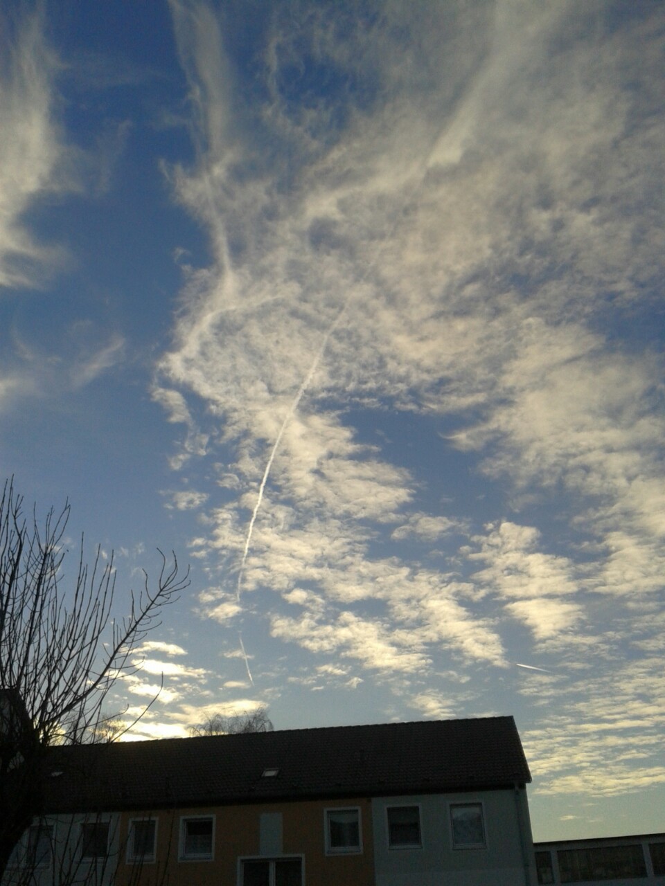 Das erste Foto zeigt uns den vermeintlich harmlosen und schönen Himmel. Die wenigen Eingeweihten unter uns erkennen allerdings direkt auf den ersten Blick die eingesprühten Chemikalien, welche in Flugmaschinen weltweit unter dem Deckmantel des kommerziellen Passagierfluges verteilt werden.