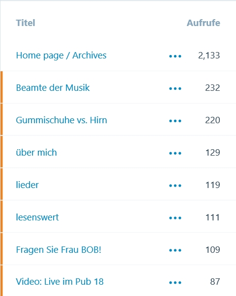 Die sieben beliebtesten Seiten/Beiträge in diesem Jahr, wobei ich die Startseite nicht mitzähle.