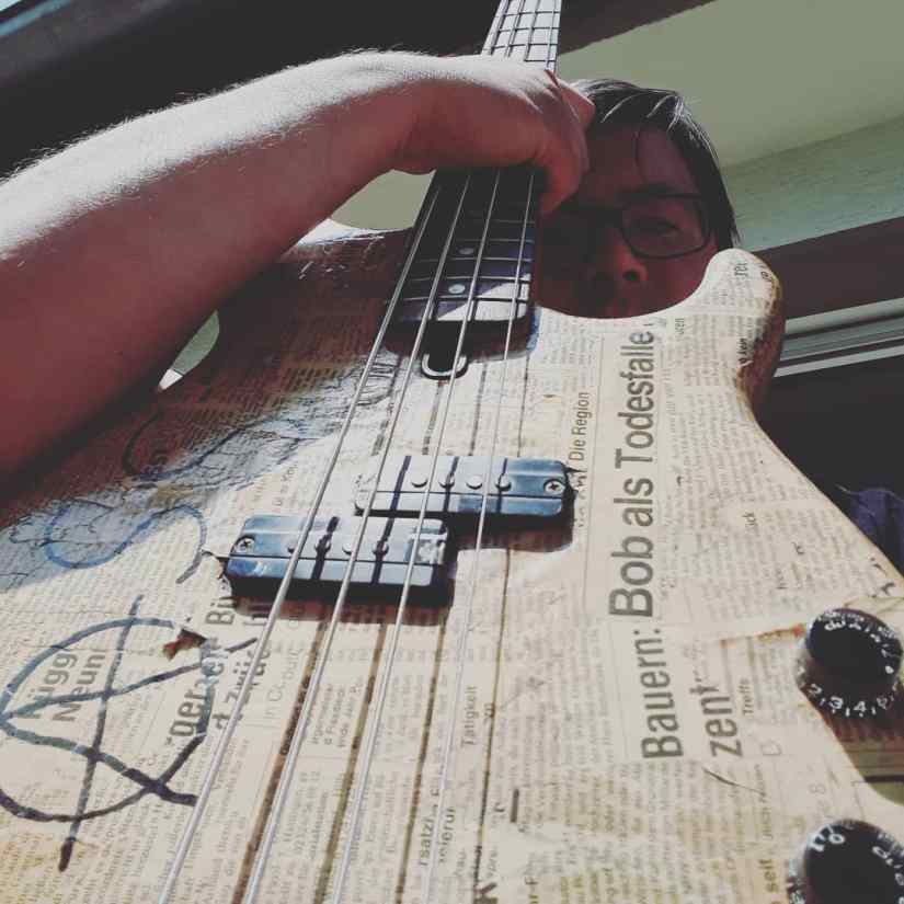 Gitarren- und Bassspuren stehen auf dem Plan. Leider ist eine Stimmmechanik meines wunderbaren Ibanez Basses spontan im Arsch. Also habe ich mein allererstes Instrument, den Yamaha Bass, mit Saiten bestückt.